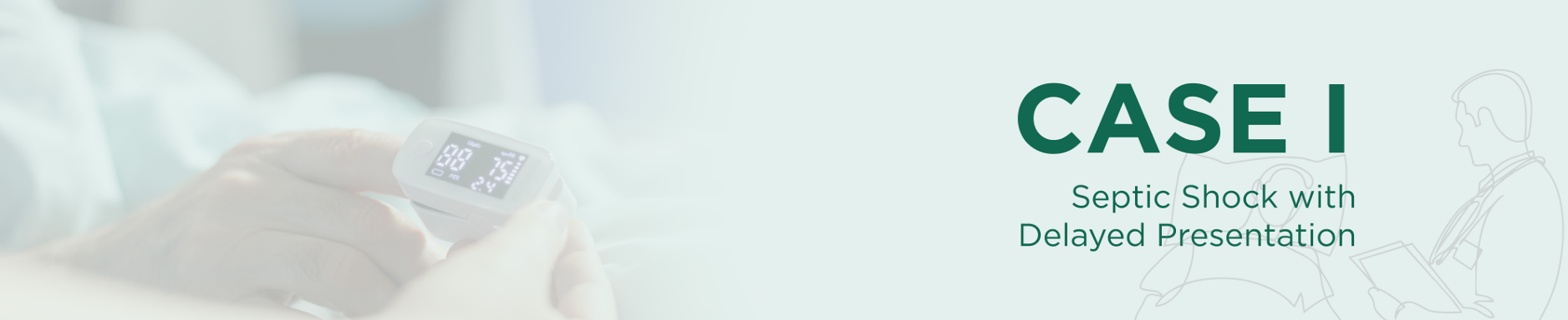 A middle-aged Indian male with diabetes mellitus and hypertension presented with fever, altered sensorium, and refractory hypotension following delayed referral. On ICU admission, vital parameters were BP 82/48 mmHg (MAP 59 mmHg), HR 122/min, RR 30/min, SpO2 88% on high-flow oxygen, and temperature 39.2°C. Laboratory evaluation revealed arterial lactate 4.6 mmol/L, serum creatinine 2.1 mg/dL, and urine output < 0.3 mL/kg/hr.