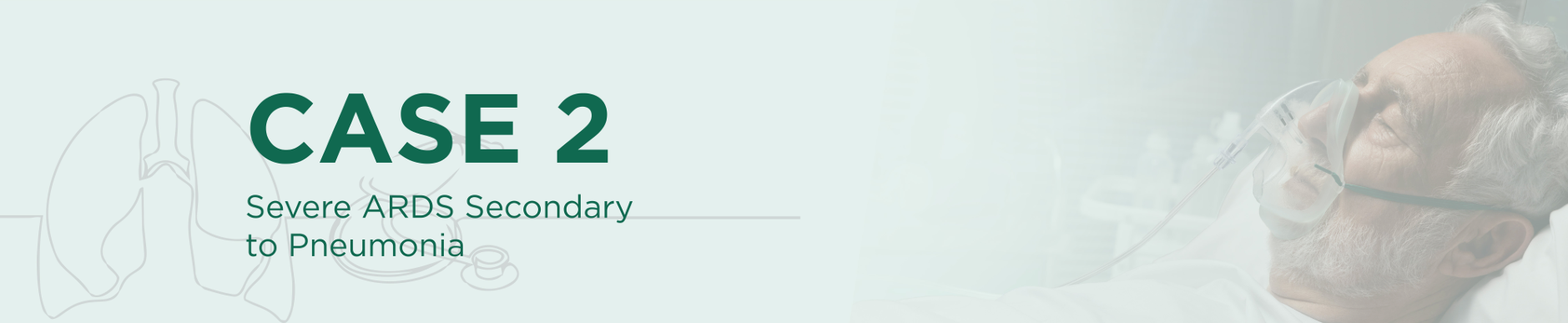 A 38-year-old woman was admitted with rapidly progressive hypoxemic respiratory failure due to severe pneumonia. On ICU admission, RR was 34/min, HR 118/min, SpO2 84% on non-invasive ventilation, and BP 110/68 mmHg. Arterial blood gas showed a PaO2/FiO2 ratio of 90. Chest imaging revealed bilateral di use infiltrates, consistent with severe ARDS.