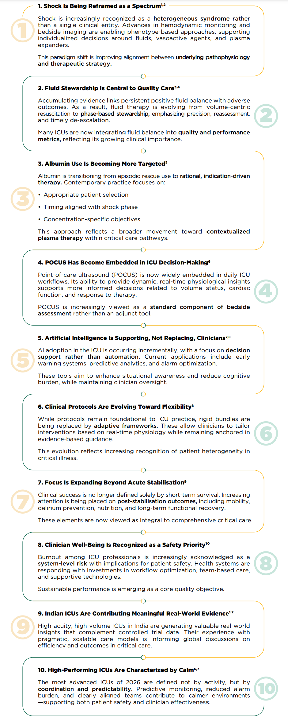 The future of ICU care will be shaped by better clinical judgment, timely intervention, & integrated systems of care. As evidence evolves, collaboration between clinicians, researchers, and the life-sciences industry will remain essential to advancing patient-centered critical care.